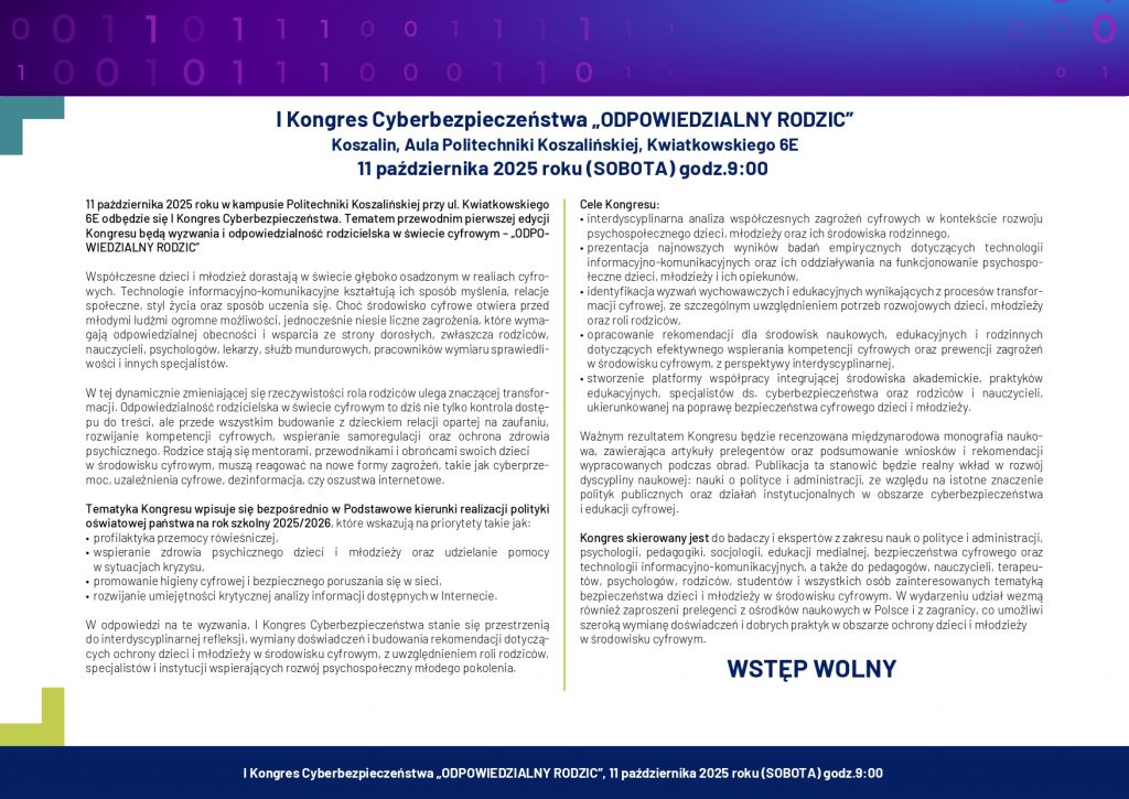 I KONGRES CYBERBEZPIECZEŃSTWA „ODPOWIEDZIALNY RODZIC”